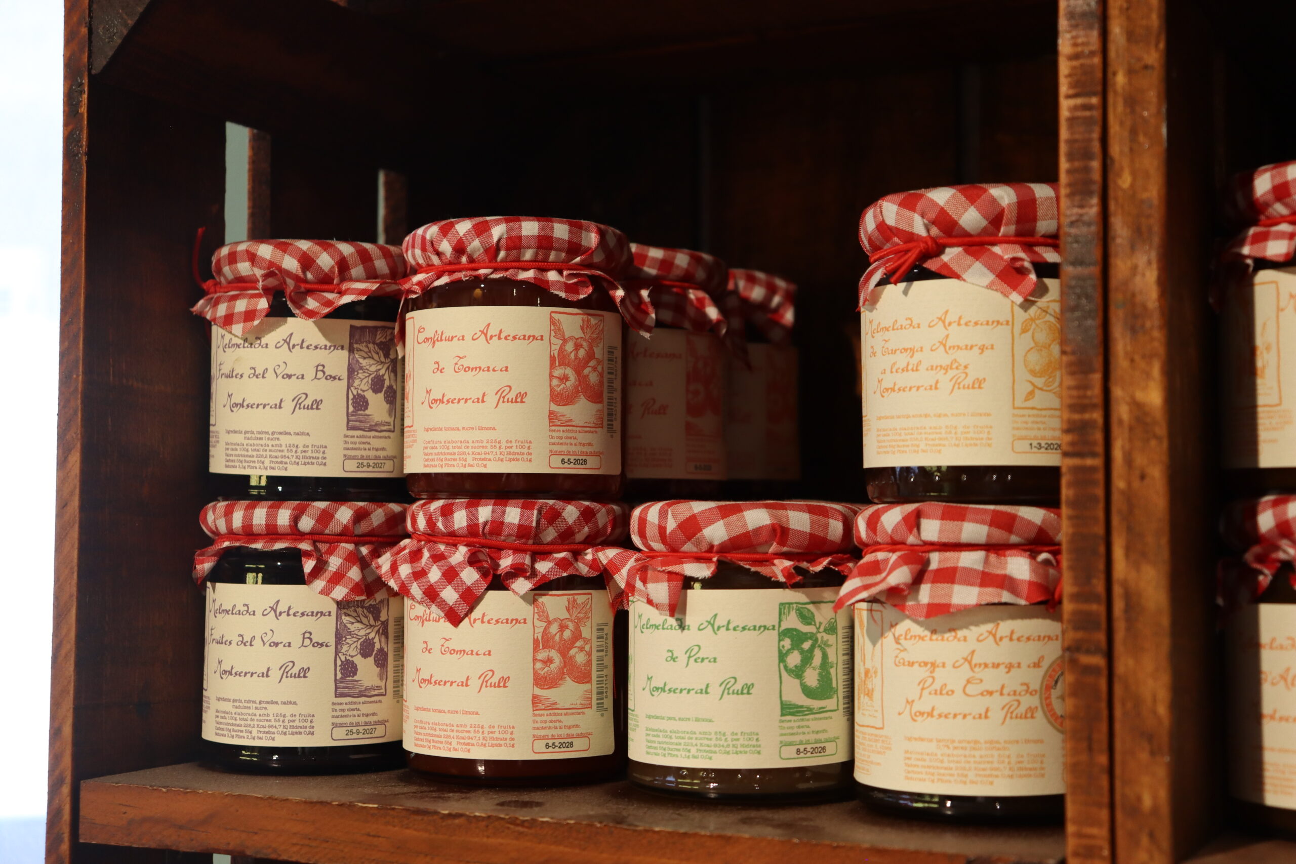Elaboradas en pequeños lotes con fruta fresca y local, las mermeladas de Montserrat Rull combinan tradición y creatividad. Sabores como naranja amarga al Palo Cortado (premiada), melocotón, higo, kumquat, frutos rojos o rosa hacen de estas mermeladas un regalo original o el complemento perfecto para desayunos y postres.